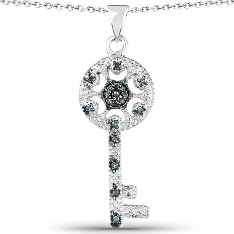 0.09 Carat Genuine Blue Diamond .925 Sterling Silver Pendant
