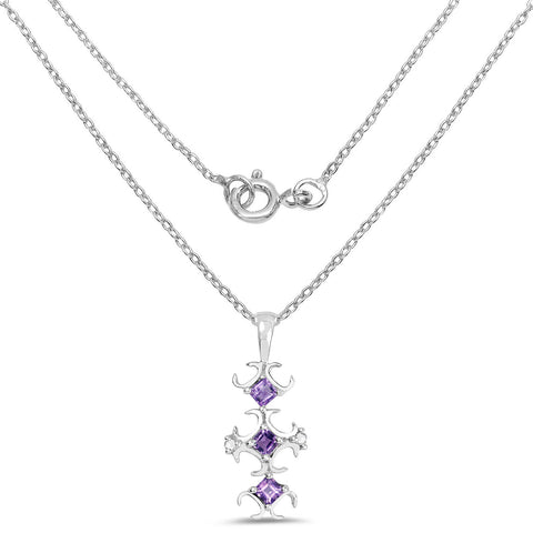0.32 Carat Genuine Amethyst and White Diamond .925 Sterling Silver Pendant Length:0.94 Inches Height:0.14 Inches Metal:.925 Sterling Silver Setting:Prong Dia wt.:0.02 Gem wt.:0.32 Metal wt.:2.076 Gross wt.:2.14 Width:0.36 Inches