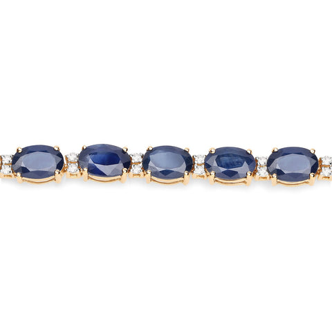 Alternating blue sapphires and white diamonds this magnificent heirloom quality tennis bracelet exudes iridescent glimmer in reflective yellow gold. The round uniquely hued gemstones are strung together in a row to create a striking display of the sparkling stones.