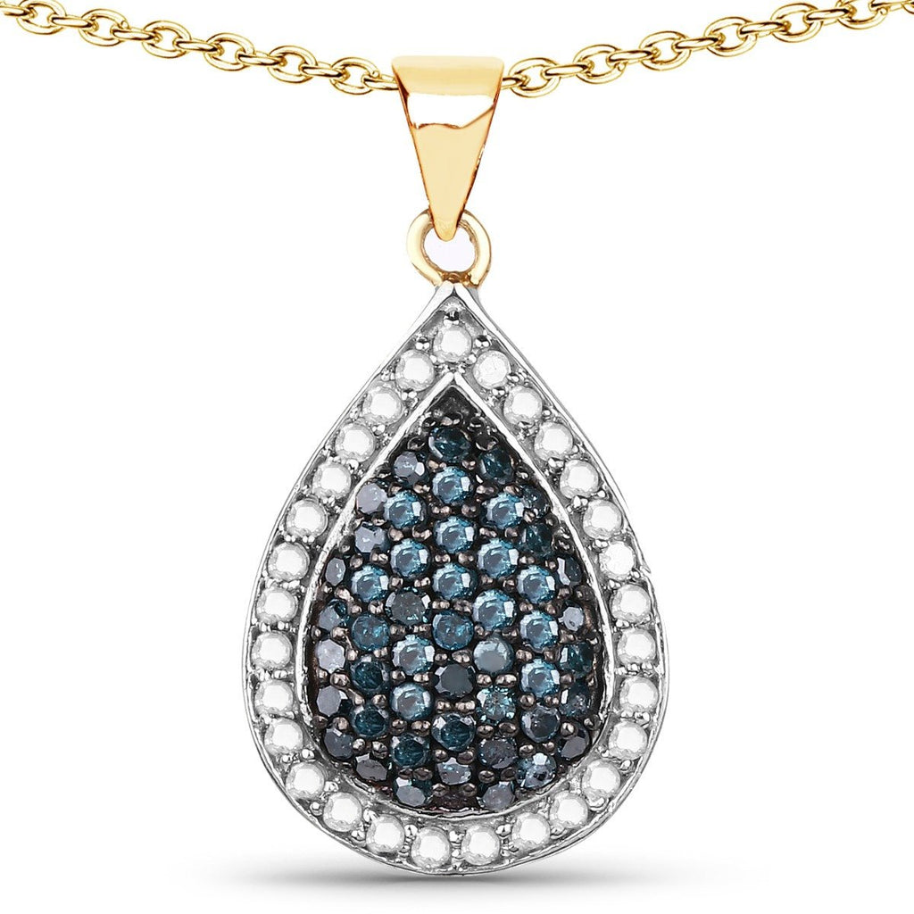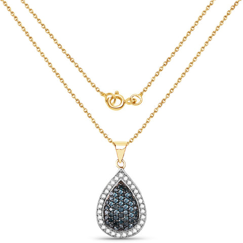 14K Yellow Gold Plated 0.81 Carat Genuine Blue Diamond and White Diamond .925 Sterling Silver Pendant
