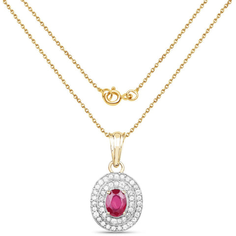 14K Yellow Gold Plated 2.52 Carat Glass Filled Ruby and White Topaz .925 Sterling Silver Pendant