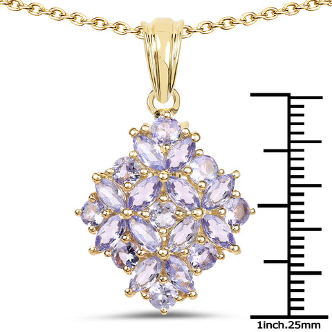 14K Yellow Gold Plated 2.58 Carat Genuine Tanzanite .925 Sterling Silver Pendant