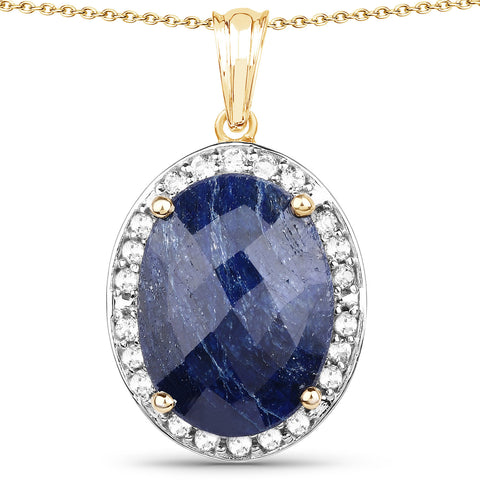 14K Yellow Gold Plated 20.88 Carat Dyed Sapphire and White Topaz .925 Sterling Silver Pendant Length:1.37 Inches Height:0.37 Inches Metal:.925 Sterling Silver Setting:Prong Dia wt.:n.a Gem wt.:20.88 Metal wt.:7.464 Gross wt.:11.64 Width:0.80 Inches