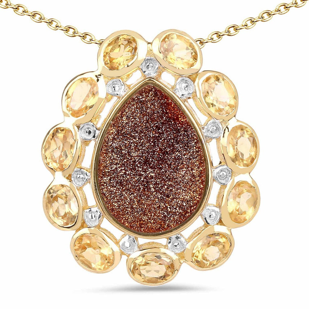 14K Yellow Gold Plated 5.14 Carat Genuine Red Droozi and Citrine .925 Sterling Silver Pendant