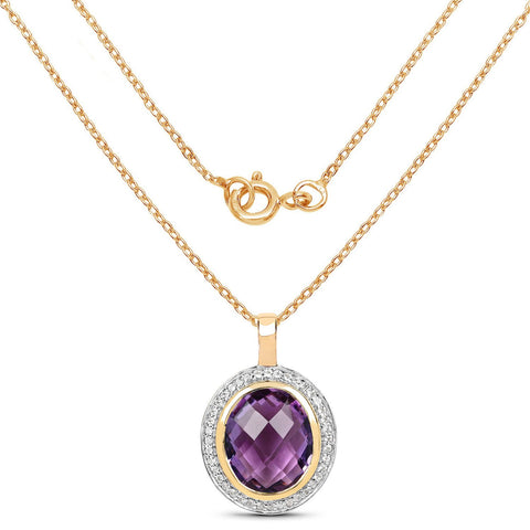 14K Yellow Gold Plated 5.59 Carat Genuine Amethyst & White Topaz .925 Sterling Silver Pendant