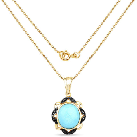 14K Yellow Gold Plated 7.33 Carat Genuine Turquoise and Black Spinel .925 Sterling Silver Pendant