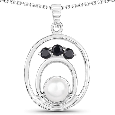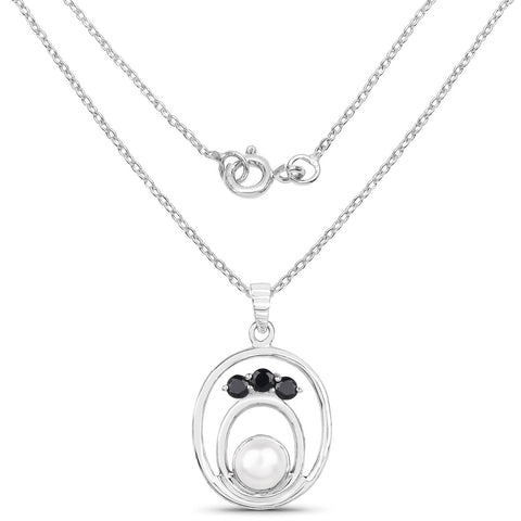 2.31 Carat Genuine Pearl and Blue Sapphire .925 Sterling Silver Pendant