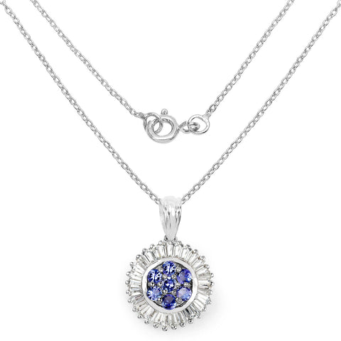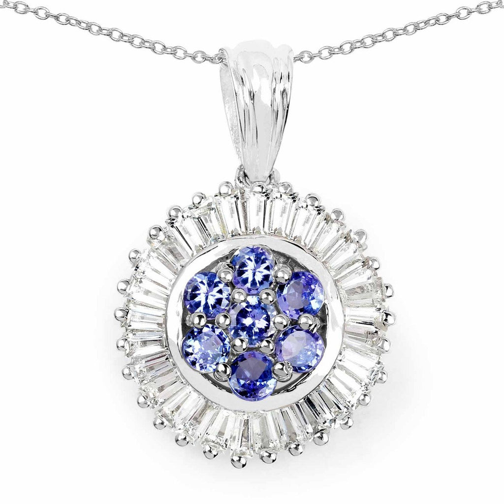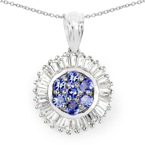 2.44 Carat Genuine Tanzanite and White Topaz .925 Sterling Silver Pendant