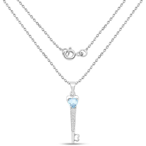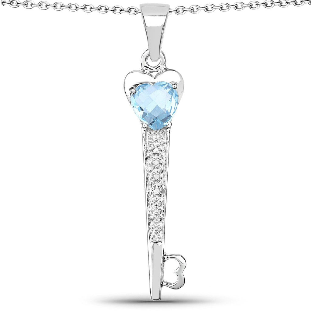 2.47 Carat Genuine Blue Topaz and White Diamond .925 Sterling Silver Pendant