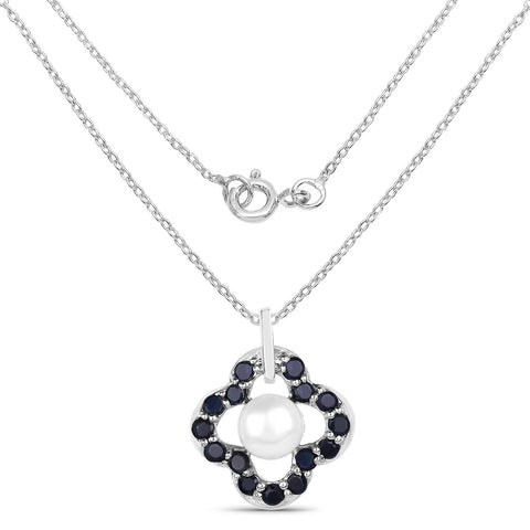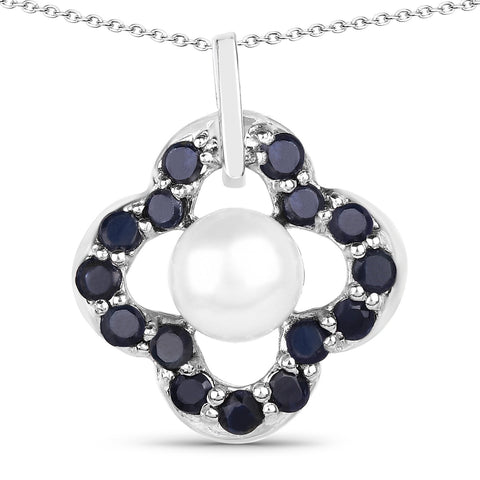 3.08 Carat Genuine Pearl and Blue Sapphire .925 Sterling Silver Pendant