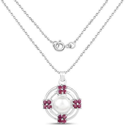 4.30 Carat Genuine Pearl and Ruby .925 Sterling Silver Pendant Length:1.02 Inches Height:0.31 Inches Metal:.925 Sterling Silver Setting:Prong Dia wt.:n.a Gem wt.:4.3 Metal wt.:6.15 Gross wt.:7.01 Width:0.74 Inches