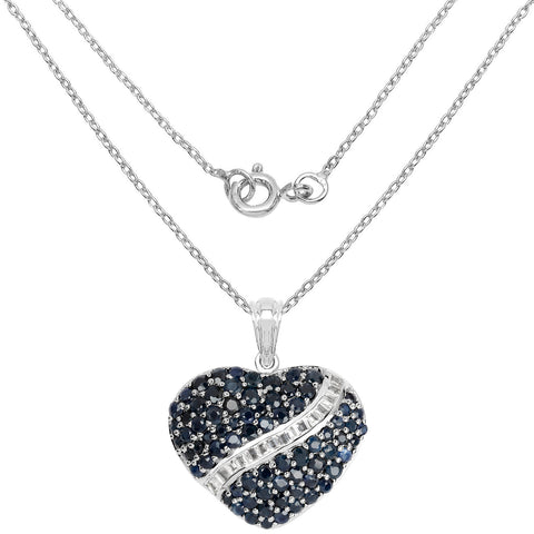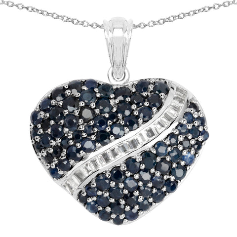 4.60 Carat Genuine Blue Sapphire and White Topaz .925 Sterling Silver Pendant