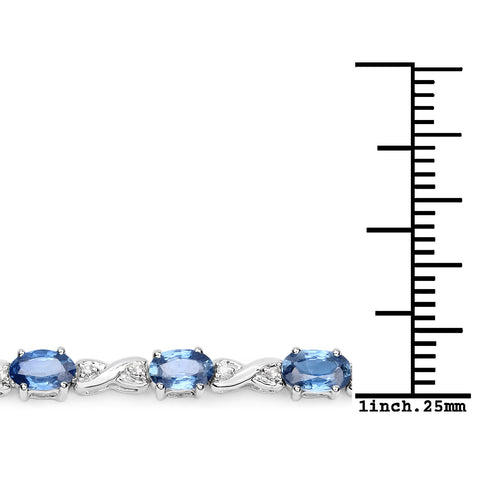 Alternating blue sapphires and white diamonds this magnificent heirloom quality bracelet exudes iridescent glimmer in reflective white gold. The round uniquely hued gemstones are strung together in a row to create a striking display of the sparkling stones.