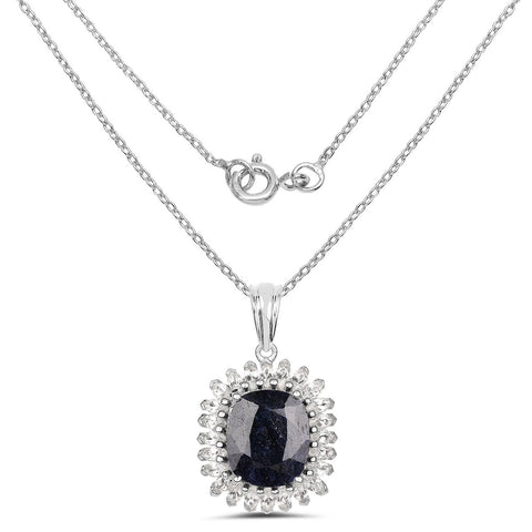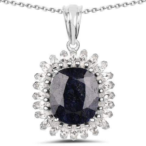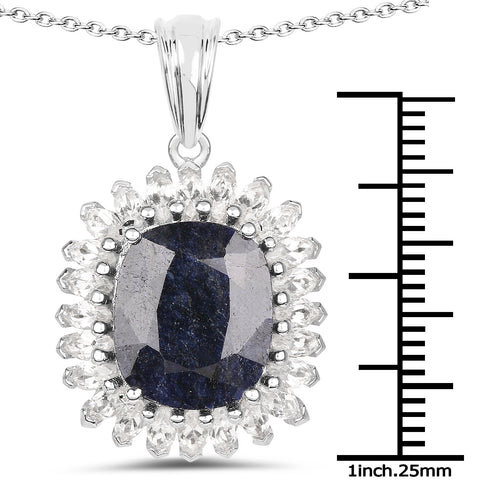 8.66 Carat Dyed Sapphire and White Topaz .925 Sterling Silver Pendant Length:1.30 Inches Height:0.36 Inches Metal:.925 Sterling Silver Setting:Prong Dia wt.:n.a Gem wt.:8.66 Metal wt.:4.668 Gross wt.:6.4 Width:0.79 Inches