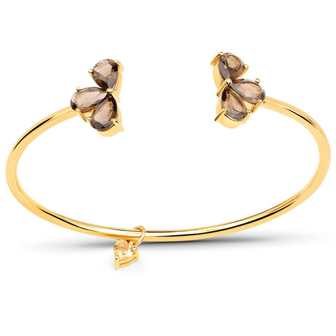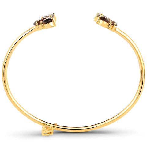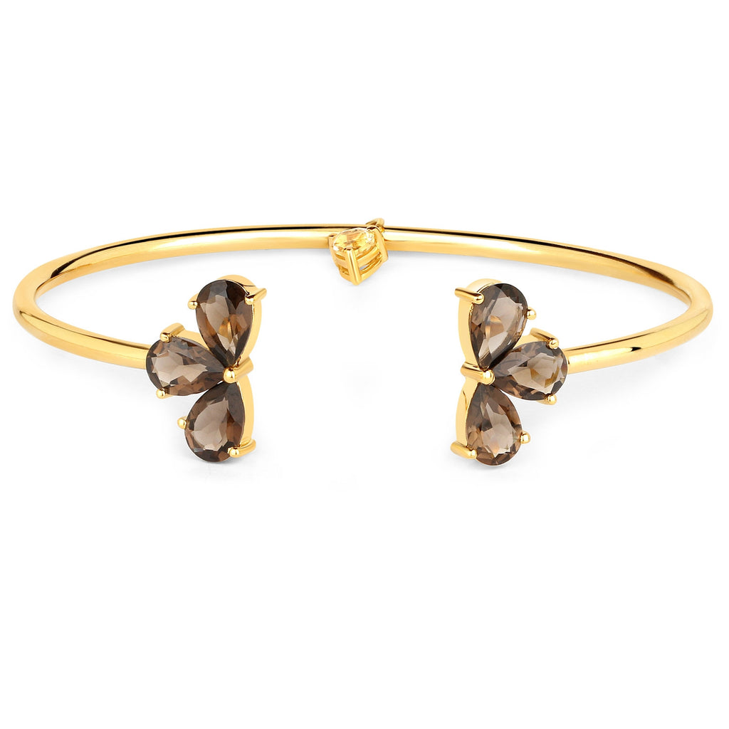 The pear-shaped Smoky Quartz will hold your breath with its sheen while the heart-shaped Citrine is a classic one. This gold plated sterling silver bangle is indeed a work of art.