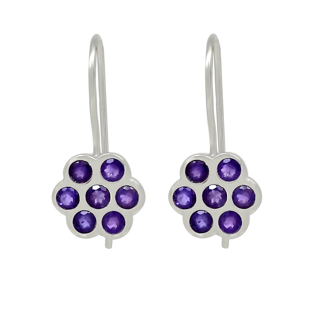 This Silver Sterling Hook Earrings Could Be Easily Adorned With Any Of Your Dresses. A Round Shaped Purple Amethyst Gemstone Gives You A Fabulous Look.