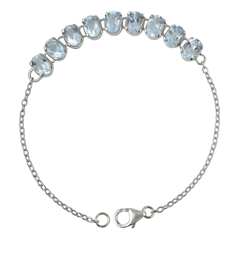 This Modish Multiple Stoned Bracelet Features Striking Blue Topaz Gemstones In The Centre, Held Together With A Sleek Chain And A Lobster Claw Clasp. The Blue Topaz Gemstones Revel In Its Piercing Allure Of Shimmering Blue, Which Is Only Heightened By The Subtle Beauty Of Rhodium