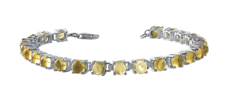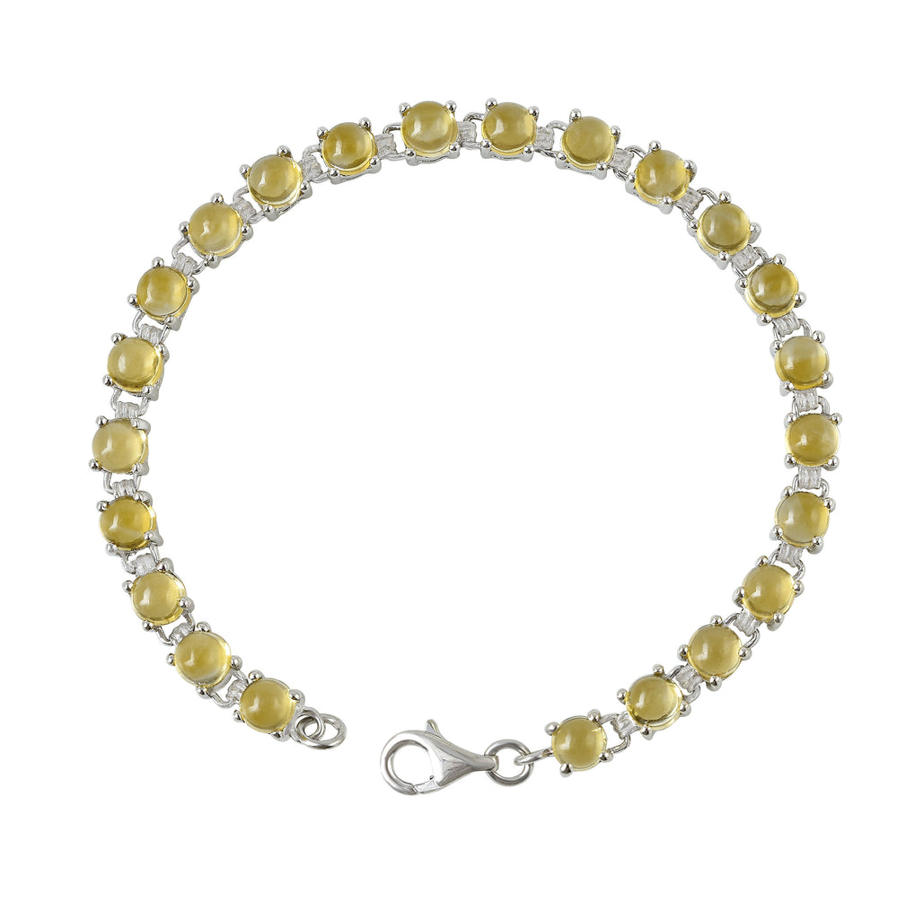 This Citrine Tennis Bracelet Exudes Iridescent Glimmer In Reflective Rhodium. The Oval Olive Green Hued Gemstones Are Strung Together In A Row To Create A Striking Tennis Style Display Of The Sparkling Stones Transcended By The Subtle Beauty Of Rhodium.