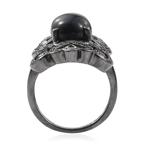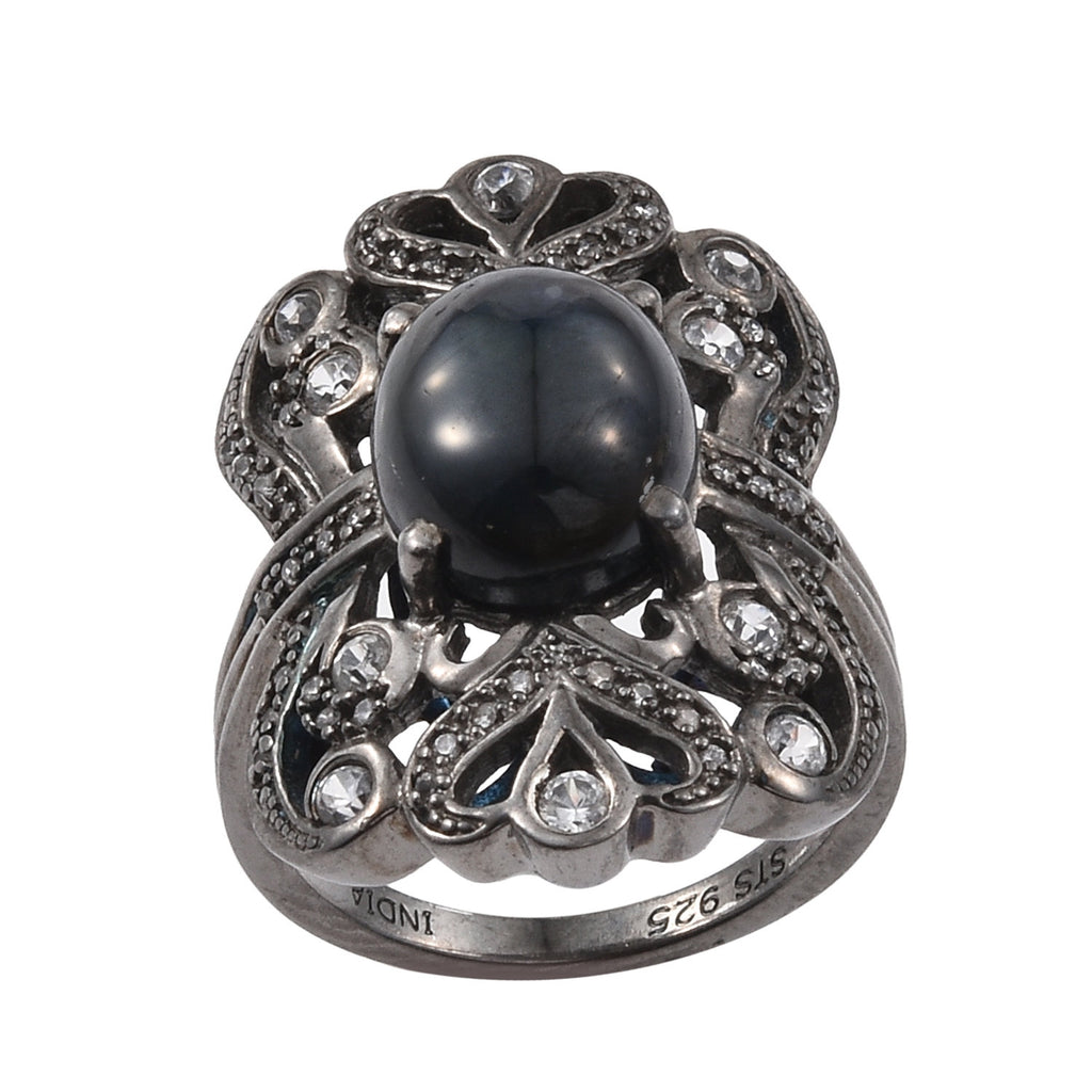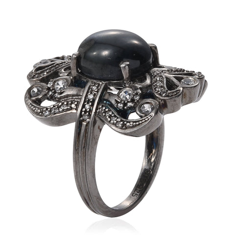 The Beauty Of Diffused Blue Sapphire And Natural White Zircon Gemstone Will Sway Over Your Heart. This Black Rhodium Plated Sterling Silver Ring Is What You Need To Look Mesmerizing.