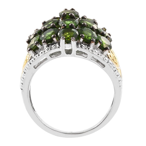 Upstate Your Style Statement By Wearing This Embellished Sterling Silver Ring With Rhodium Plating. It Features An Artistic Embellishment Of Russian Diaopside And White Topaz Gemstones Which Grab The Attention Of All.