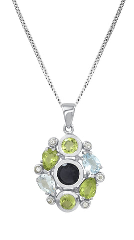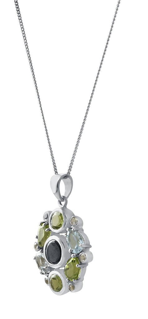 This Garnet And White Topaz Sterling Silver Necklace Exudes Iridescent Glimmer In Reflective Rhodium. The Oval Uniquely Hued Garnet Gemstone Is Beautifully Enveloped By White Topaz To Create A Striking Display Of The Sparkling Stones.
