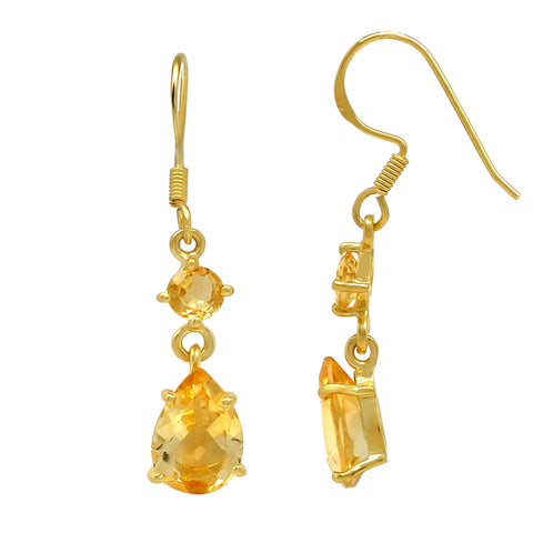 Gold Plated Sterling Silver Drop Earring With Multiple Sized Citrine Stone