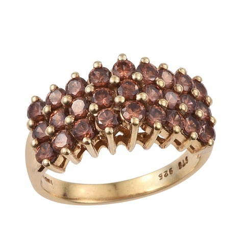 Feel The Elegance Of A Royal Queen With This Exquisite Yellow Gold Rhodium Plated Sterling Silver Ring, Jeweled With Polished Brown Zircon, It Is A Work Of Art.
