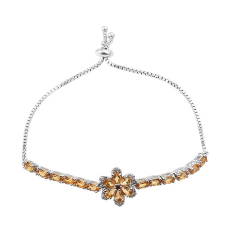 This Dainty Necklace Features A Red Garnet Gemstone Posing As A Bud, Surrounded By Fiery Citrine Petals. The Necklace Features A Line Of Citrine Stones And Natural White Zircons On Either Side Of The Flower, With A Rhodium Clasp, Accentuating Its Floral Luminescence.