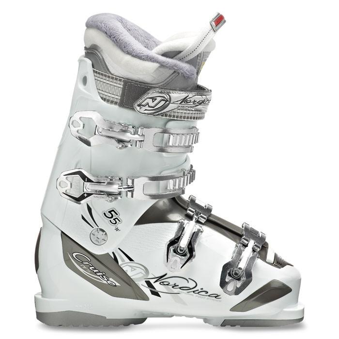 The Nordica Women's Cruise 55 W All Mountain Ski Boots are the optimal boot for the skier looking for a comfortable option that also offers the technology and features that will help them advance to the next level. This is the most generous fitting boot in the Nordica line. Natural foot stance provides faster turn initiation with stronger edge rip and better ski control throughout the entire turn. The Cruise provides more performance, precision and better balance with less effort. Featuring a Women's specific Comfort Fit Liner and soft flex.