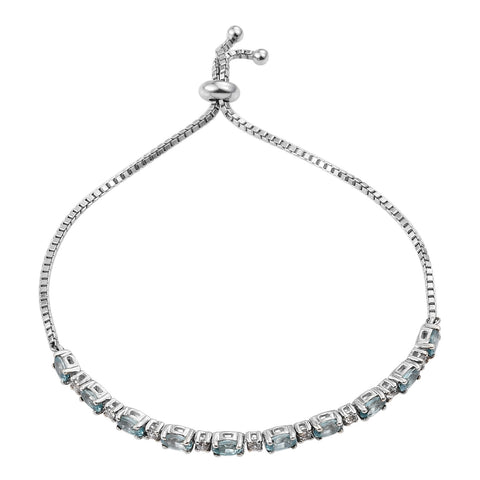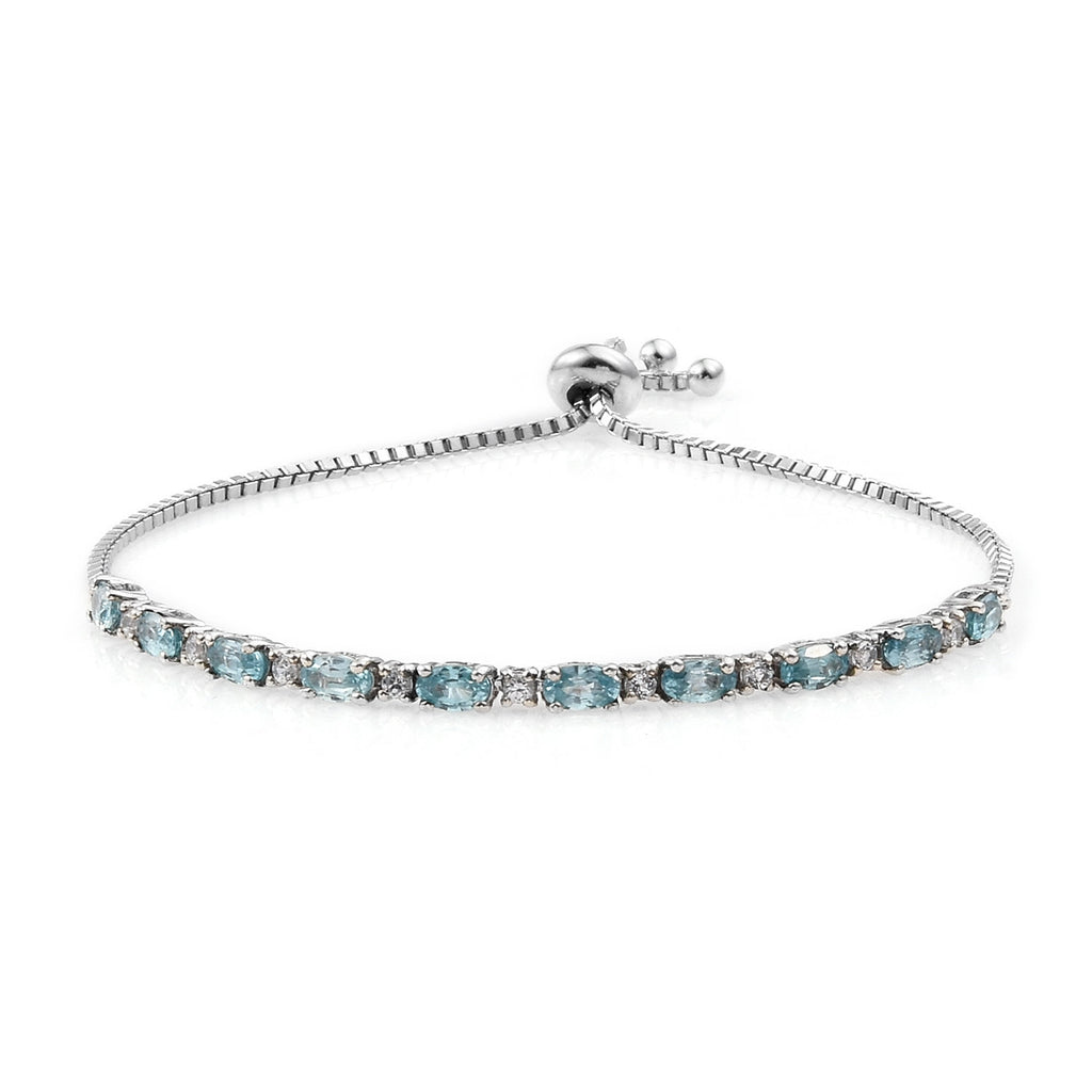 Impress Your Peers With Your Unmatched ?lan With This Rhodium Plated Sterling Silver Bracelet Featuring Blue Zircon And Natural White Zircon Gemstones.