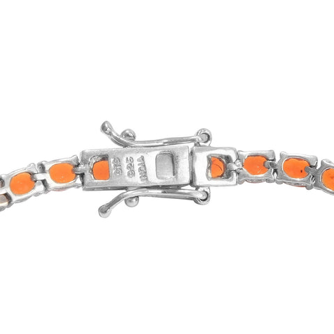 Enhance The Beauty Of Your Delicate Hands With This Rhodium Plated Sterling Silver Bracelet. The Polished Fire Opal Gemstones Will Enhance Oomphs And Brilliance To Your Looks.
