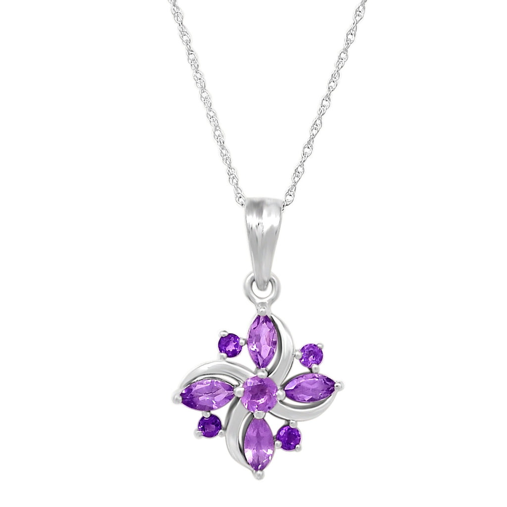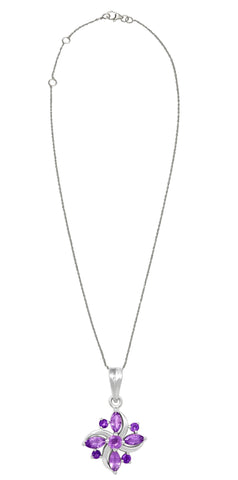 The Exquisite Flower Design With Beautiful Amethyst Stones Crafting Will Surely Steal Your Heart At First Glimpse Only. The Rhodium Plated Sterling Silver Pendant Is Ideal For All Sort Of Occasion.