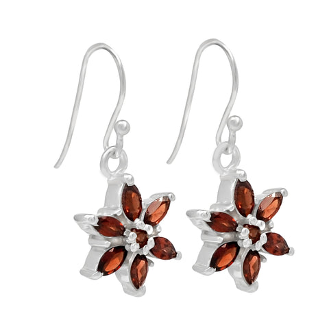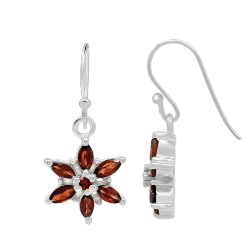 Perfect To Put On With The Party Wear Apparel, These Beautiful Hook Earring Are Made Exclusively For You. Sterling Silver Body, 0.40 Ct. Rhodium Polish And Round Shaped Natural Red Garnet Gemstones Add Beauty To Its Minimalist Design.