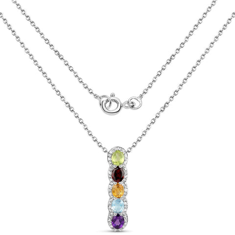 Royal Looking Sterling Silver Pendant With Chain Jeweled With Polished African Amethyst, Blue Topaz, Citrine, Garnet, Peridot, White Topaz A