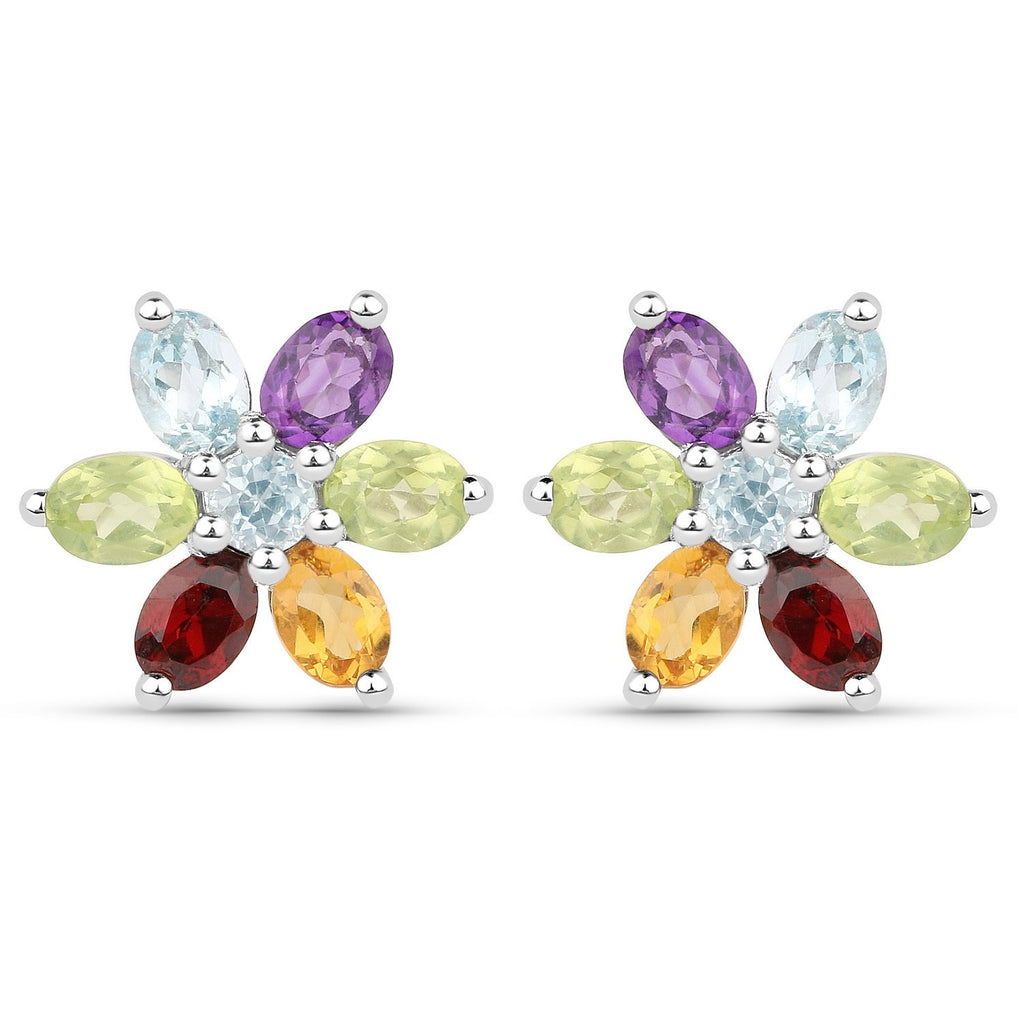 Embark a style that nobody own with this stunning rhodium plated sterling silver earring. The polished Citrine, Peridot, African Amethyst, Blue Topaz, and Garnet gemstones radiate and impeccable class and sheen.