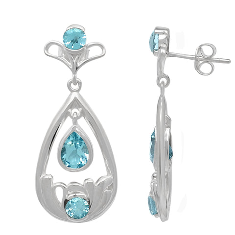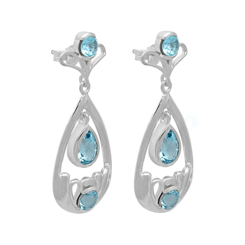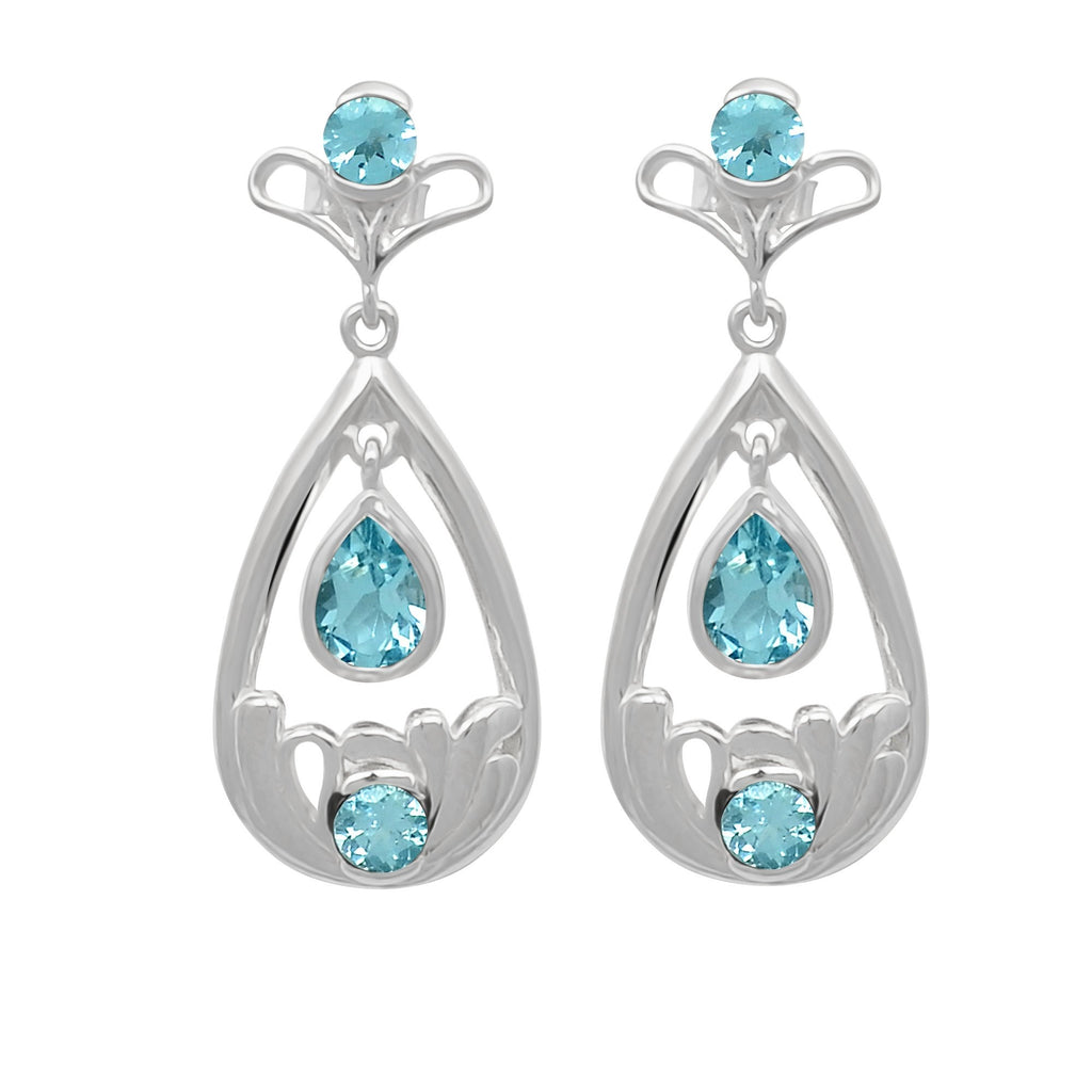Stunning Sterling Silver Earring With Enduring Rhodium Plating And Blue Topaz Stone