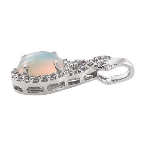 White Topaz With Opal And Tanzanite Silver Sterling Pendant Plated With Rhodium.