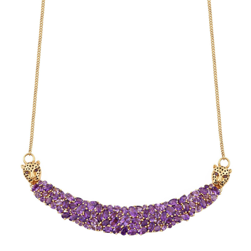 Enhance Your Panache With This Yellow Gold Plated Sterling Silver Necklace. The Beautiful Crafting Of Polished African Amethyst Gemstones Will Surely Sway Over Your Heart.