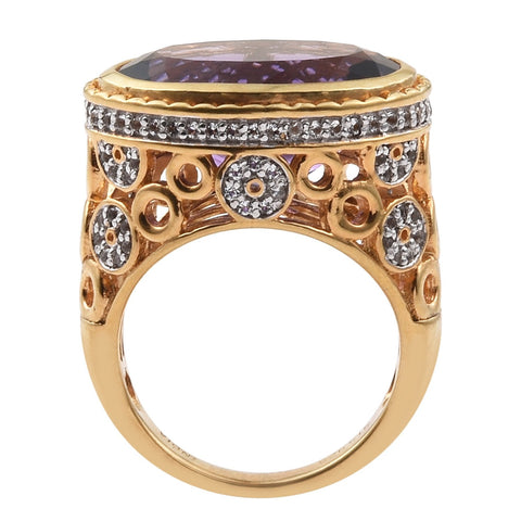 The Purple Bolivian Amethyst Embedded On The Sterling Silver Base Look Highly Stately. The Yellow Gold Plating Compliments The Overall Look And White Topaz All Around.