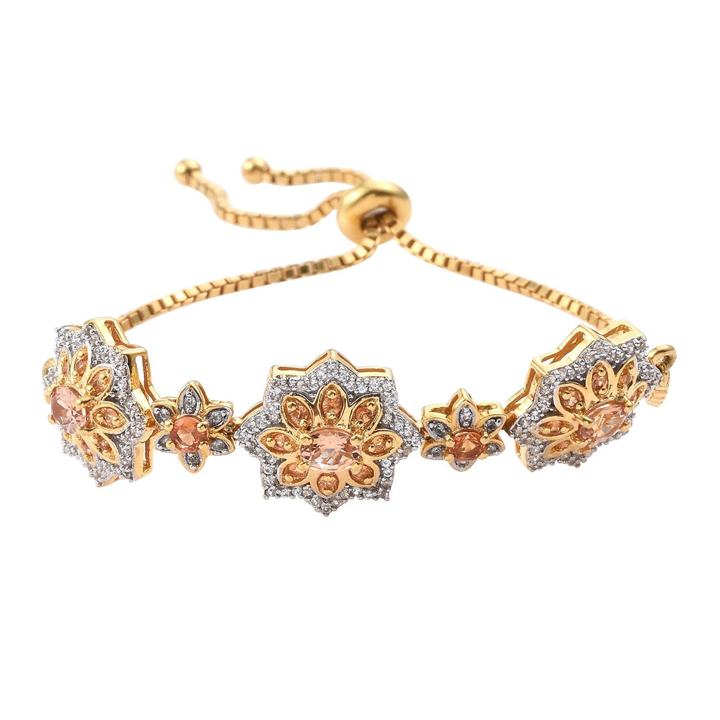 Polished Imperial Topaz, Orange Sapphire, And Natural White Zircon Are Well-Crafted In A Yellow Gold Rhodium Plated Sterling Silver Bracelet Will Steal Your Look From The First Glimpse Only.