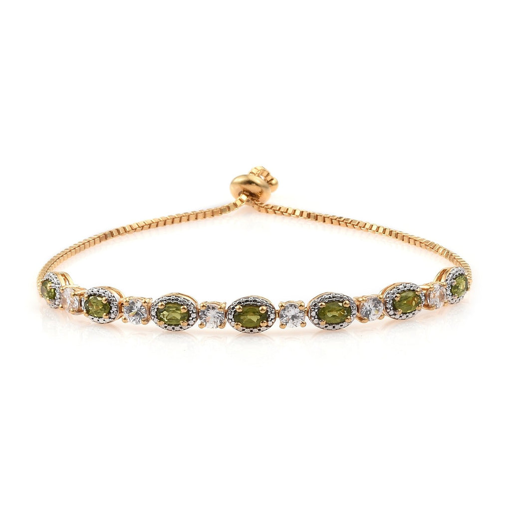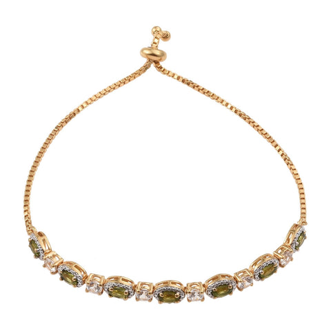 Elegant And Charming Are The Words To Describe The Real Beauty Of This Yellow Gold Rhodium Plated Sterling Silver Bracelet With Vesuvianite, And Natural White Zircon Gemstone Embellishments.