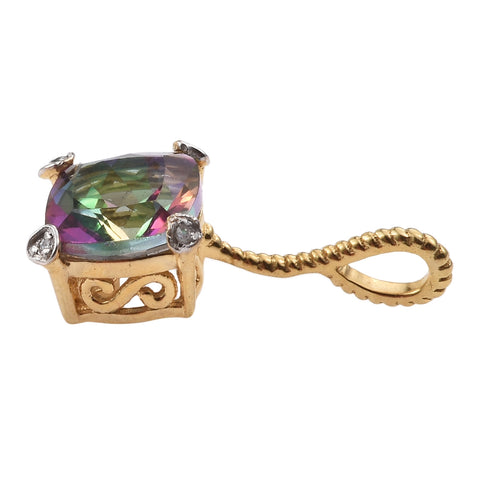 Add The Amazing Hue Of Mystic Coated Quartz To Any Look With This Yellow Gold Rhodium Plated Sterling Silver Pendant. To Enhance Its Beauty, There Is Natural White Zircon At The Corners.
