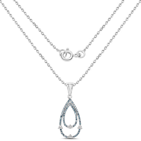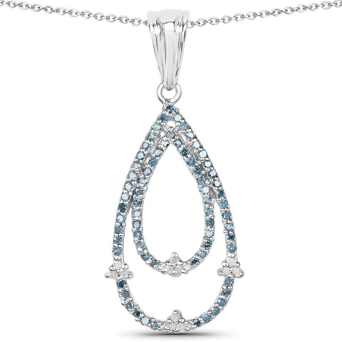 0.34 Carat Genuine Blue Diamond and White Diamond .925 Sterling Silver Pendant