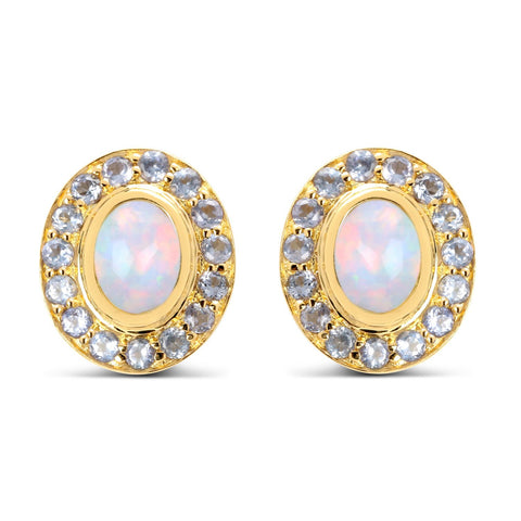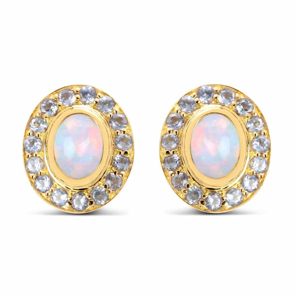 Ethiopian Opal:Oval/7x5mm 2/0.96 ctw + Tanzanite:Round/2.00mm 30/1.05 ctw