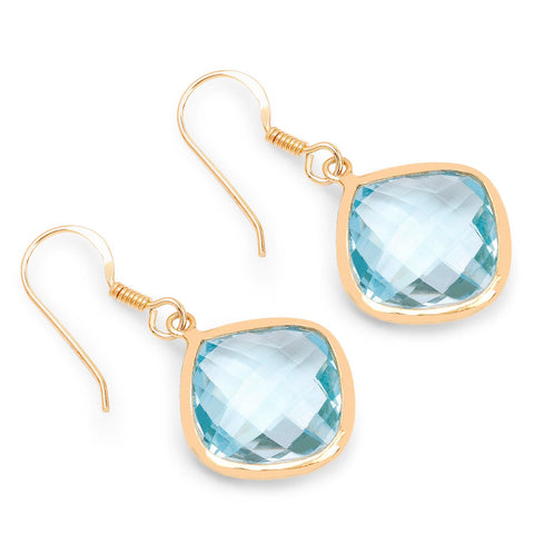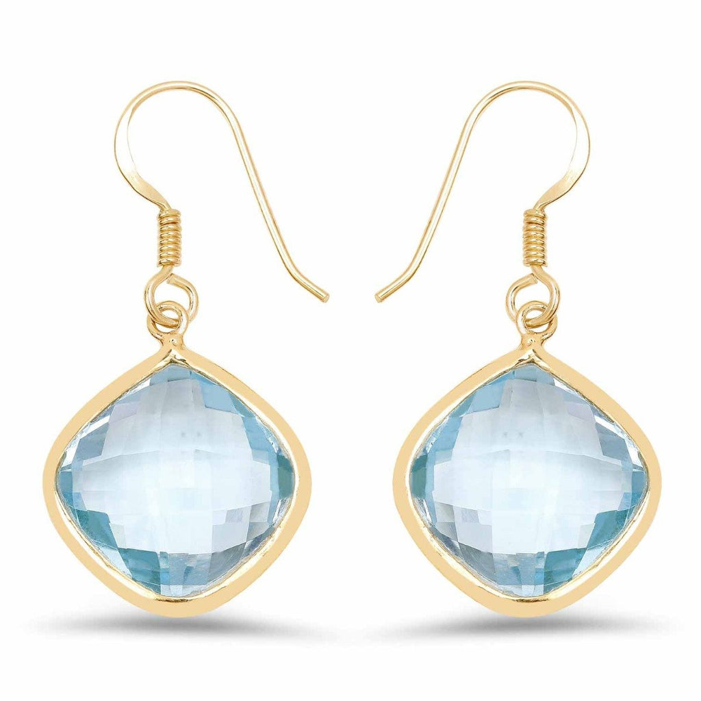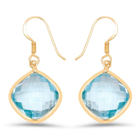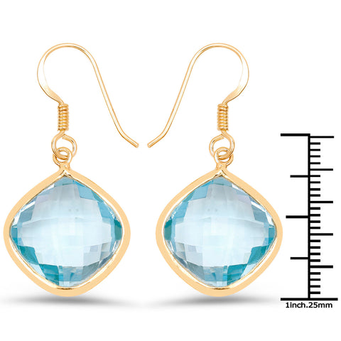 14K Yellow Gold Plated 29.00 Carat Genuine Blue Topaz .925 Sterling Silver Earrings