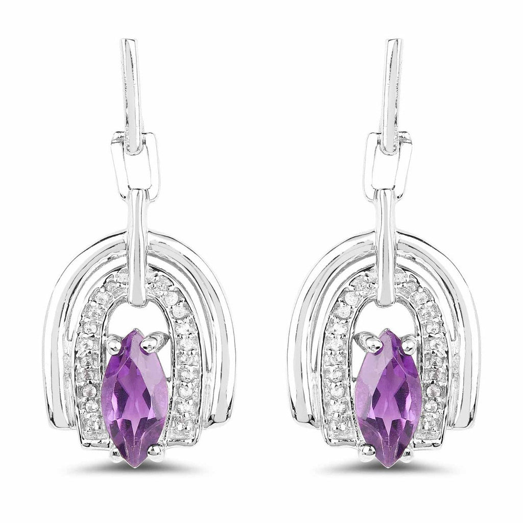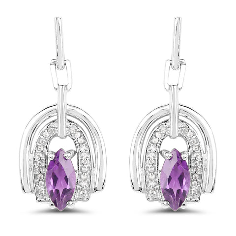2.20 Carat Genuine Amethyst and White Topaz .925 Sterling Silver Earrings