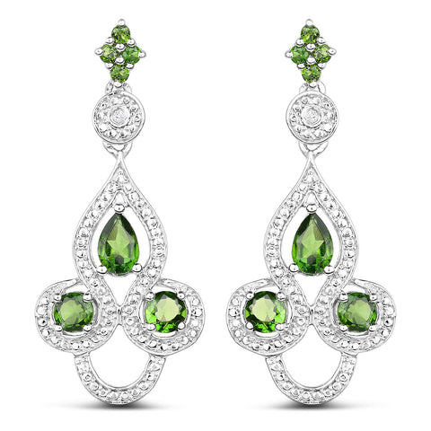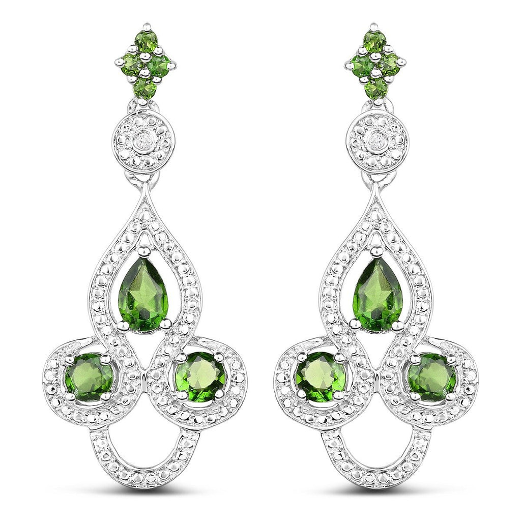 Chrome Diopside:Pears/6x4mm 2/0.80 ctw + Chrome Diopside:Round/4.00mm 4/1.12 ctw + Chrome Diopside:Round/1.90mm 8/0.30 ctw + Topaz White:Round/1.60mm 2/0.06 ctw