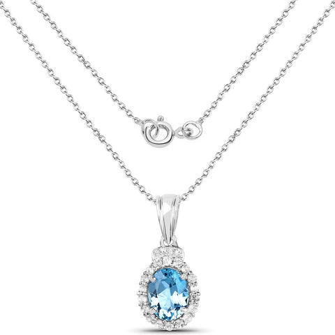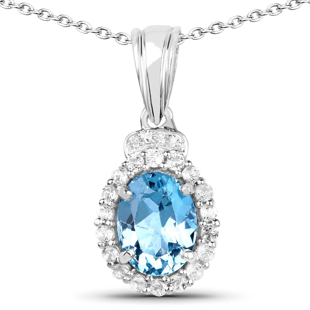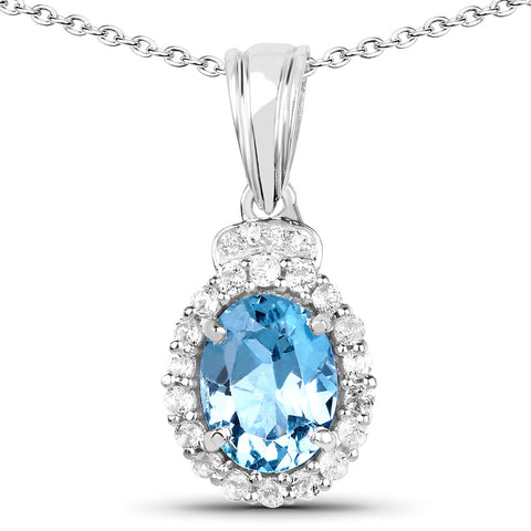 2.42 Carat Genuine London Blue Topaz and White Topaz .925 Sterling Silver Pendant