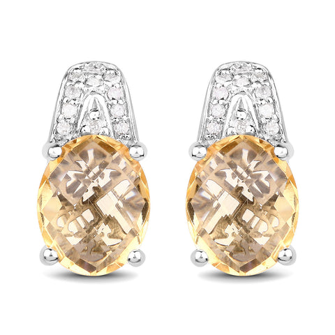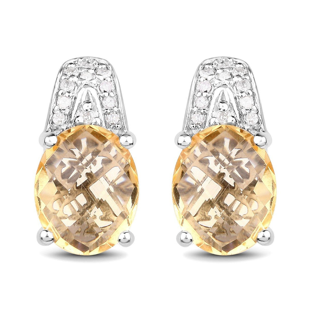 Citrine:Briolite Oval/10x8mm 2/4.70 ctw + Diamond White:Round/1.10mm 22/0.15 ctw