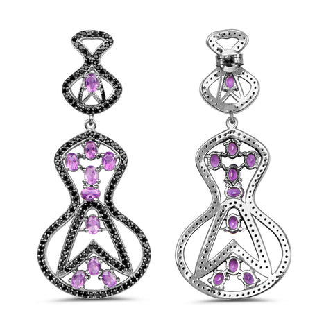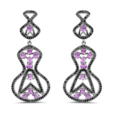 5.30 Carat Genuine Amethyst and Black Spinel .925 Sterling Silver Earrings